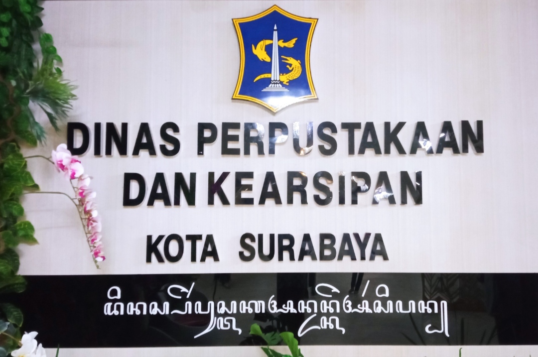 Adalah pantas pemasangan ini bagi Dinas Perpustakaan dan Kearsipan Kota Surabaya karena Dinas inilah yang harus menjadi motor penggerak ꦥꦼꦔꦼꦩ꧀ꦧꦔꦤ꧀ pengembangan literasi Bahasa dan Aksara Jawa. Karenanya, Wali Kota Surabaya Eri Cahyadi menelpon Dinas ini untuk pertama kali pada 11 September 2023 agar membuat penulisan beraksara Jawa di lingkungan OPD di pemerintahan Kota Surabaya.