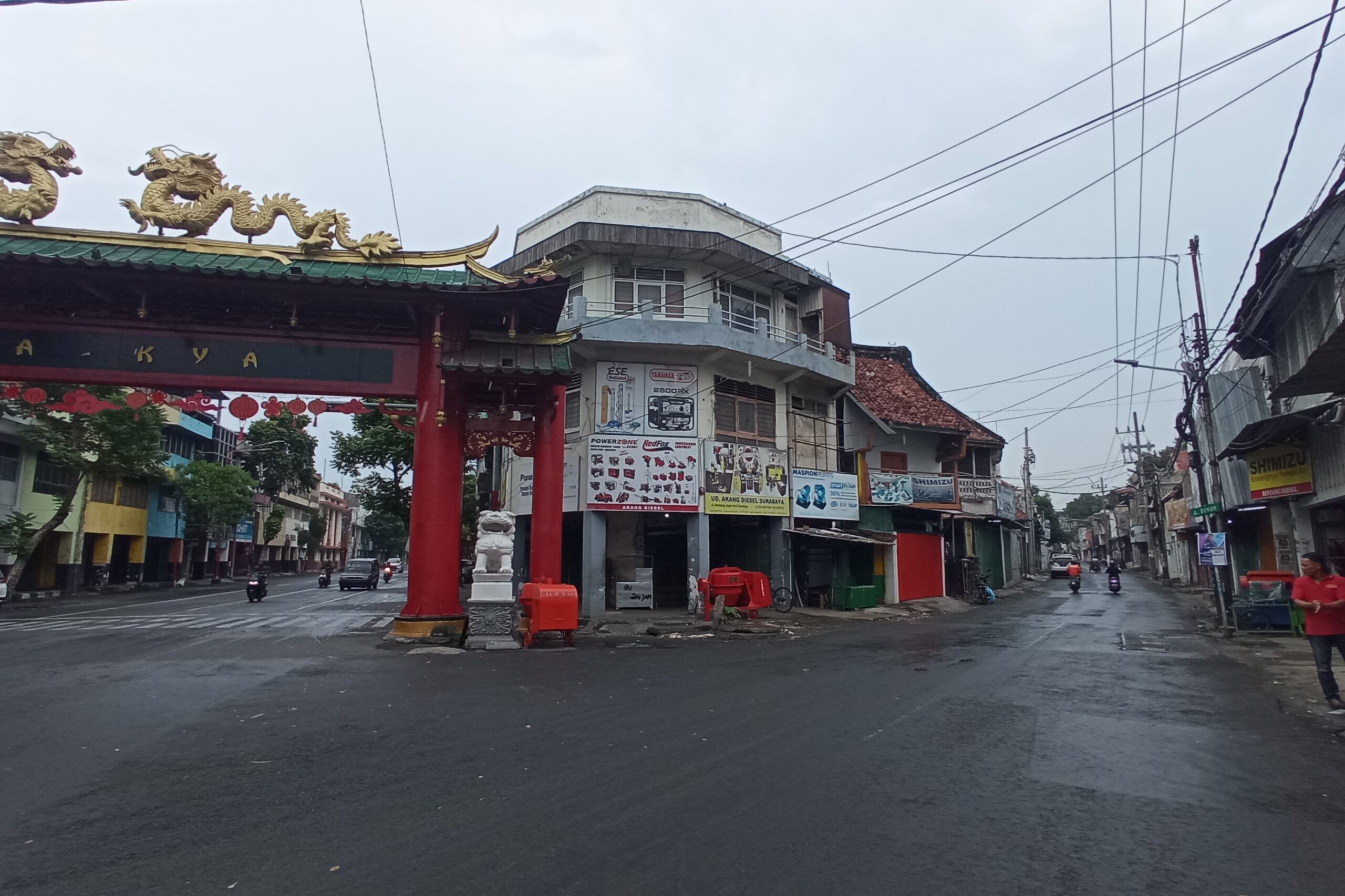Omahaksara.id: Surabaya (11/2/24) – Jalanan di kawasan Pecinan Surabaya sepi pada hari pertama di Tahun Baru Imlek 2575 Kongzili, yang jatuh pada hari Sabtu, 10 Februari 2024. Tahun baru penanggalan Tionghoa ini merupakan Tahun Shio Naga, tepatnya Tahun ꦤꦒꦏꦪꦸ Naga Kayu.